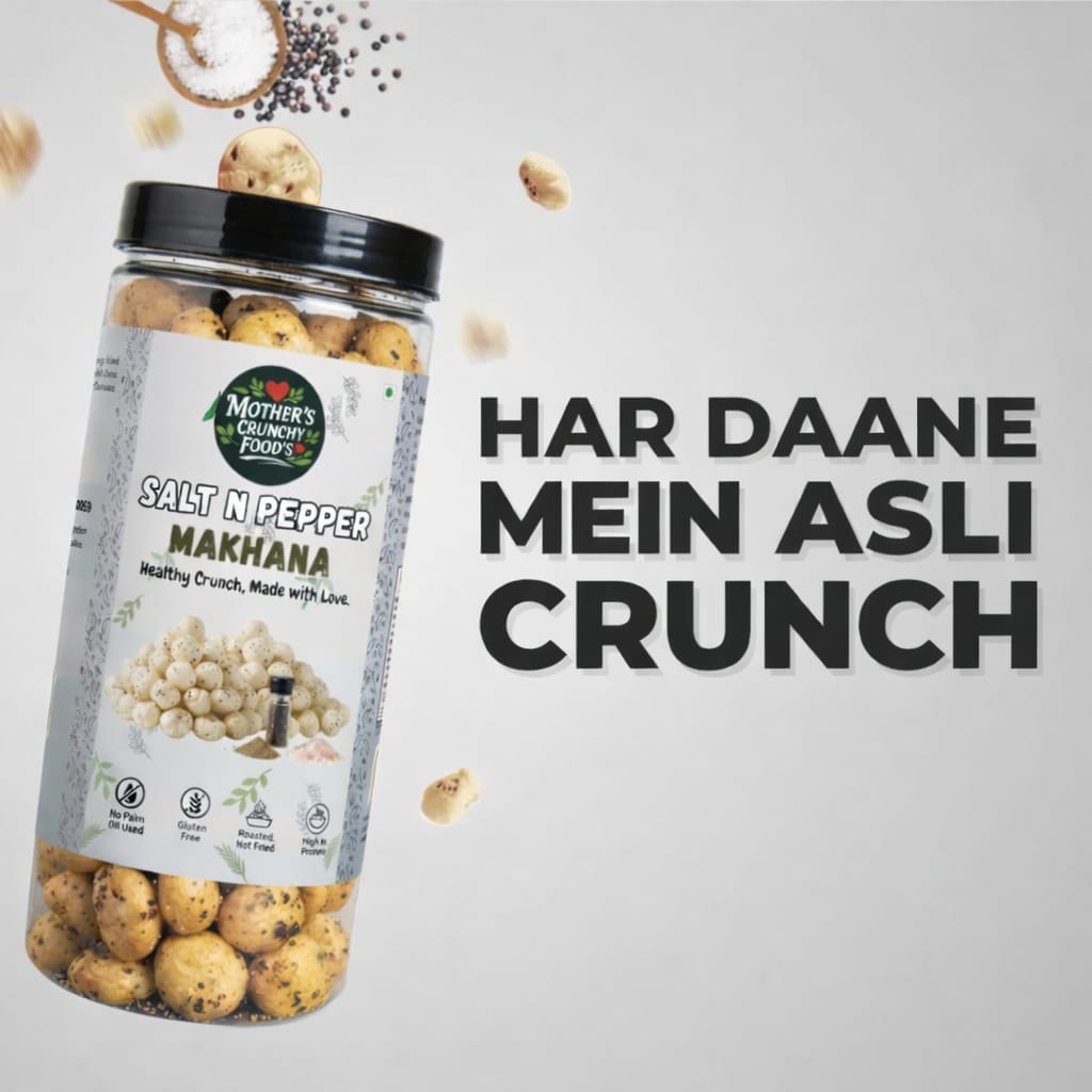 Discover the timeless charm of Salt & Pepper Roasted Foxnuts β a clean, classic and flavourful snack made with premium-quality foxnuts slow-roasted to perfection. Each bite offers a light, crisp crunch paired with the perfect balance of Himalayan salt and freshly ground black pepper.